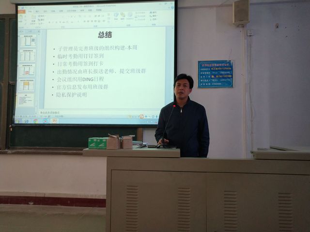 首先,雷建军教授向大家讲解了关于钉钉签到和管理钉钉群的方法。他强调,班级干部们要重视钉钉打卡,培养同学们每天早晚打卡的习惯。同时,他鼓励各班委要坚持做好管理工作,任何一项制度在实行初期都会遇到很多问题,希望大家能克服困难。