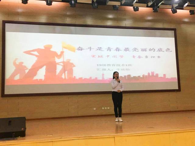 谈到演讲比赛的主题“四进四信”时,牛欣怡表示,习近平总书记在纪念“五·四运动”一百周年大会上的讲话中,反复强调了青年的力量和青年的重要性。其中有一句话让她印象十分深刻——“奋斗是青春最靓丽的底色”,最终她就以这句话作为了自己的演讲主题。