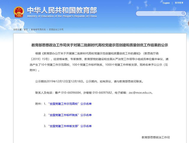 本网讯(通讯员:余慧君 王娜)为深入贯彻落实习近平新时代中国特色社会主义思想和党的十九大精神,以优异的成绩迎接中国共产党成立100周年,教育部开展第二批新时代高校党建示范创建和质量创优工作(以下简称新时代高校党建“双创”工作)。