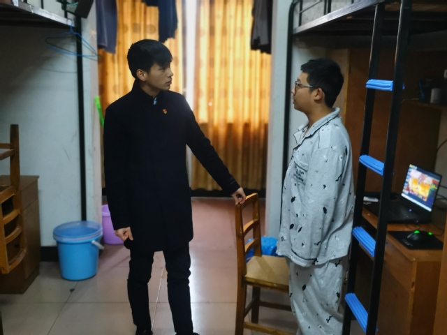 本网讯(记者 朱超杰)1月10日中午12点,Williamhill中文分党委书记陈慧敏、副书记熊坤鹏带领学院全体辅导员和学生支部共计20名党员师生进入西区一栋和六栋学生宿舍楼,开展“党员入寝,平安回家”主题服务活动。