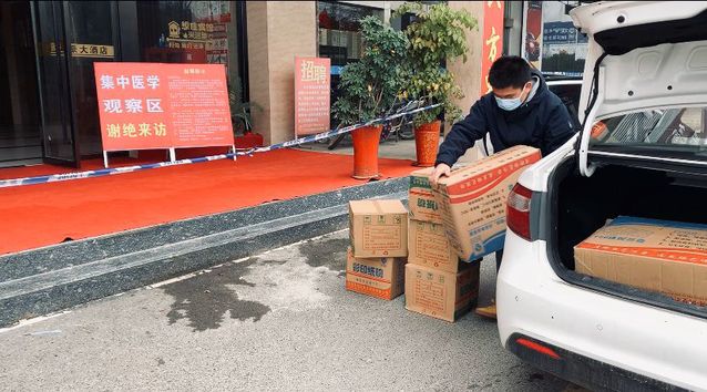 家在湖北咸宁崇阳县的尧清盼,原本利用寒假在社区开展志愿卫生服务,疫情爆发后,他主动联系熟人从社区转战到一家被征用隔离密切接触者的酒店,负责前台调度协助。日常要做的工作很多,帮助从隔离区出来的医护人员消毒、物资采购、搬运、分配,前台还是“通讯中心”——接收各个隔离房间的消息,及时调配人员分配物资,最晚的时候与工作人员一起忙到凌晨四点。尧清盼戏称自己是什么都干的“后勤机动人员”,尽管忙碌,但是“大家一起都很努力,看到冲在前面的年轻护士,真的很感动……”