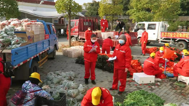 朱文浩和志愿者们一起装卸菜品