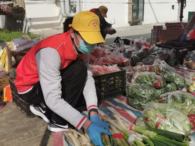 青年志愿者的主要任务是分装、配送小区居民购买的蔬菜,在小区门口担当“守门员”对要进出小区的人进行管理与监控。分装好的蔬菜在当日就会被送到各个小区,由小区内居委会人员及青年志愿者一起卸货,整理,分发,对于不方便行动的老人以及被隔离的单元,我们去进行单独的配送。