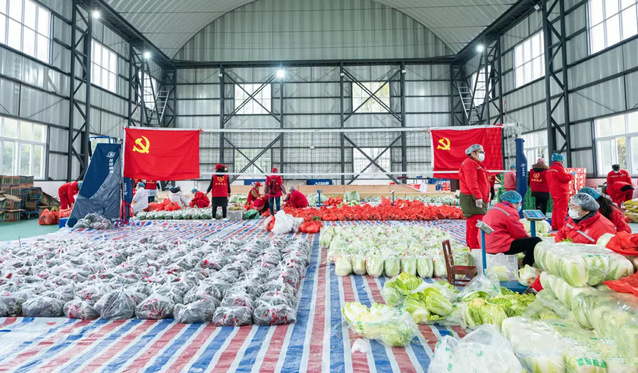 各小区管理人员在清点对应小区的蔬菜以及生活物资,之后送往各个小区