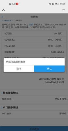 学生登录账号,在“线上签约”中即可查看收到的邀约,根据邀约函决定是否签约(“线上签约”——“查看邀请函”——“同意”签约)。