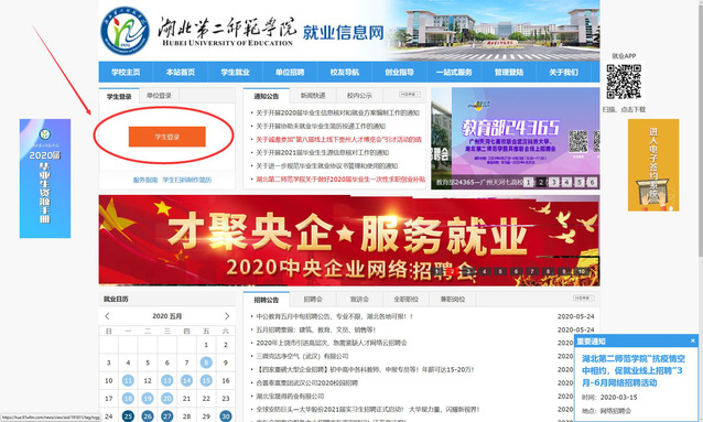 第二步:进入学校就业信息网:https://hue.91wllm.com/,点击左上角学生登陆,进入登录界面