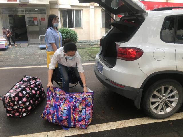 党政办主任覃姗姗帮毕业生转运行李