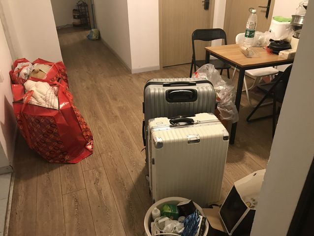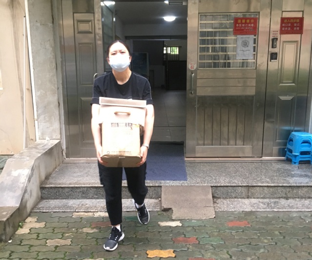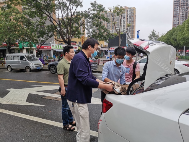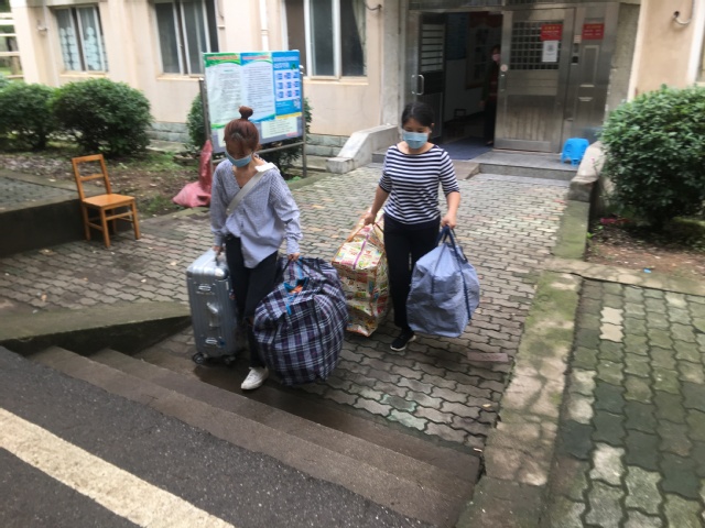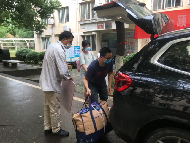 教师甘胜丰博士一直坚守在学生宿舍帮忙一趟又一趟搬运和转运行李
