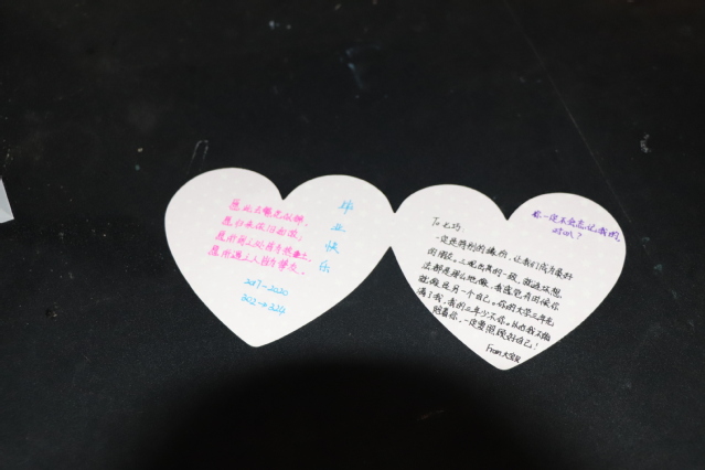 第一位回到宿舍的同学,给后来的室友每人留下一张告别卡片。收到卡片的室友说:看到就突然觉得真的毕业了,好舍不得……