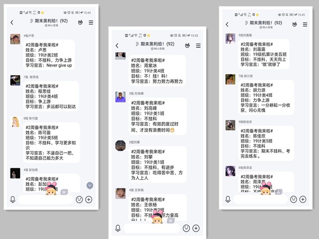 开营仪式后,同学们在群内积极发布自己的“两周学习宣言”,为自己加油打气。