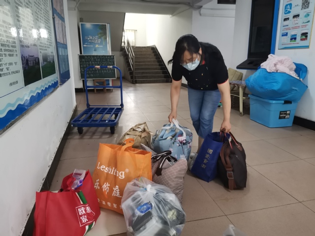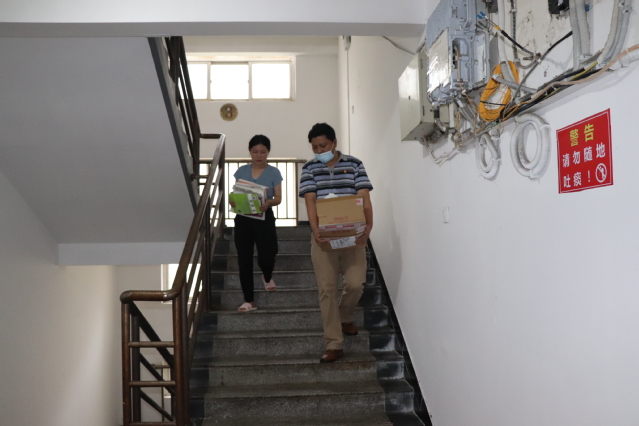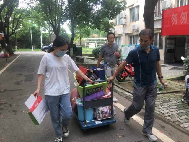 图书馆党支部书记吴晓健、馆长林彬、信息办公室主任易建平、图书馆党支部副书记李玲、副馆长曾涛、李翠萍、信息化办公室副主任李尚仁等顶着暴雨酷暑,帮学生搬运行李许多趟,指导毕业生办理登记、退宿等手续。