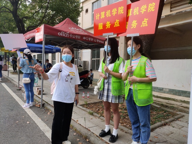 学院志愿服务队队员正认真解答返校学生的疑问