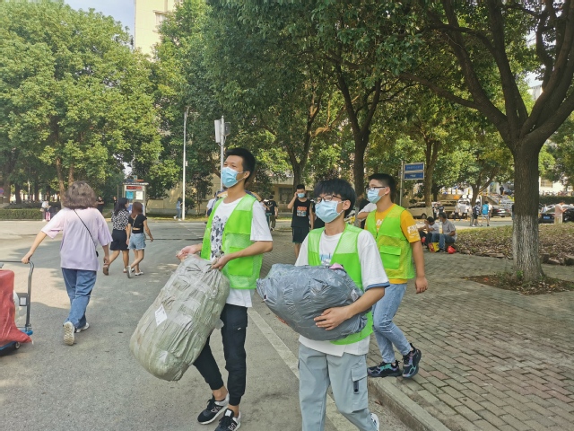 一名被帮助的女同学表示,“返校前一直担心行李太多没办法运进来,但是对接我的同学特别热心帮忙,扛行李累的满身大汗,真的很谢谢他。”
