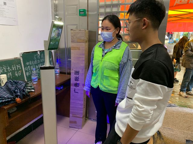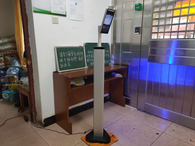 人脸识别测温设备在宿舍楼下安装完毕等待上岗
