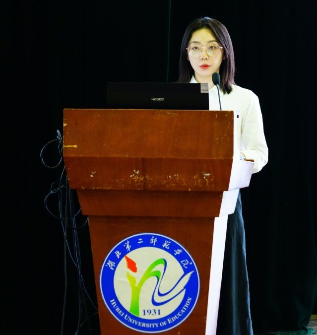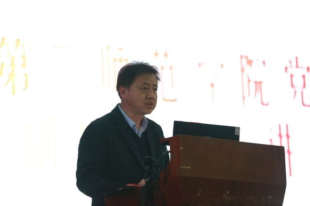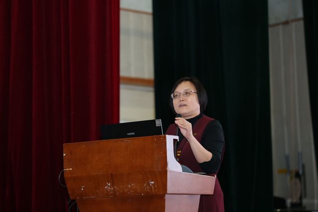院长杨莉介绍学院教学科研、人才培养情况。摄影记者 牛欣怡