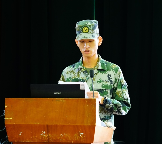 19级计算机科学与技术专业学生、退伍军人王靖钦分享军旅生涯,鼓励新生应征入伍。摄影记者 宋学成