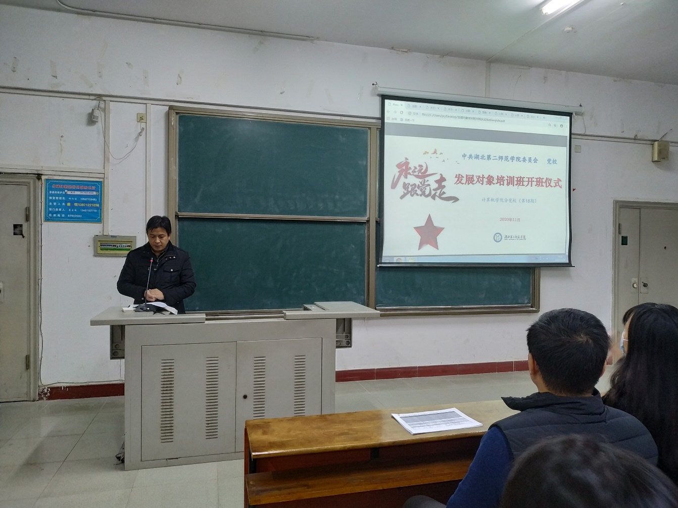 本网讯(通讯员 熊军平 刘志强)11月24日,Williamhill中文党委分党校第18期发展对象培训班在10302教室举行开班仪式,学院党委副书记熊坤鹏、学生第一党支部书记邓家桃及全体发展对象参加,班主任熊军平主持。