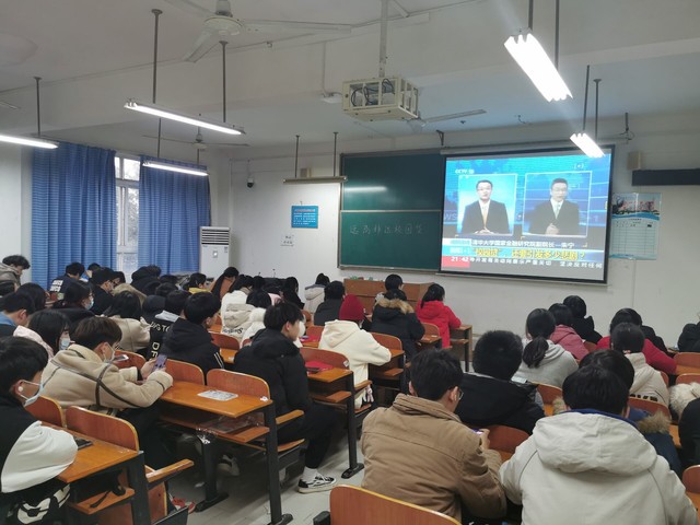 2020级计算机类1班、2班的同学在观看讲座回放(摄影记者 张超凡)