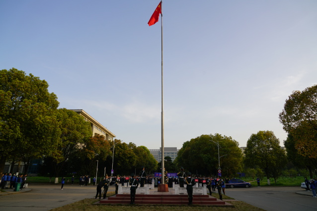 清晨7点,全体参会人员整齐列队完毕。伴着清晨的阳光,国旗班迈着整齐的步伐护送国旗入场。随后,全体奏唱国歌,国旗伴着国歌缓缓升起。