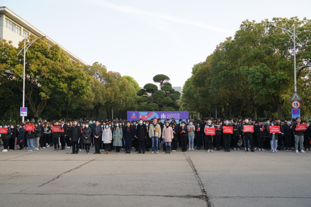 全体师生行注目礼(摄影 宋学成)