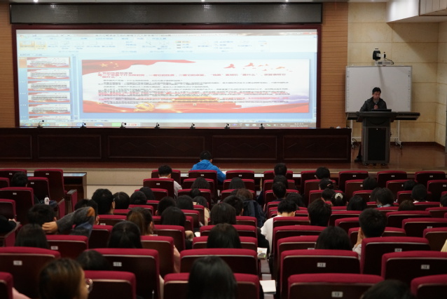 本网讯(通讯员 杨盈)3月29日中午,Williamhill中文分党校第18期入党积极分子培训第三课开讲。学院党委副书记熊坤鹏主讲,讲解“习近平新时代中国特色社会主义思想”。