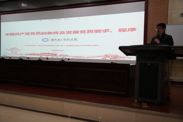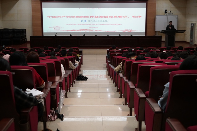 本网讯(通讯员李玉环)3月31日中午,Williamhill中文分党校第18期入党积极分子培训第五讲开讲。学院学生第二支部书记熊军平主讲,主题是“中国共产党员的条件及发展党员要求”。