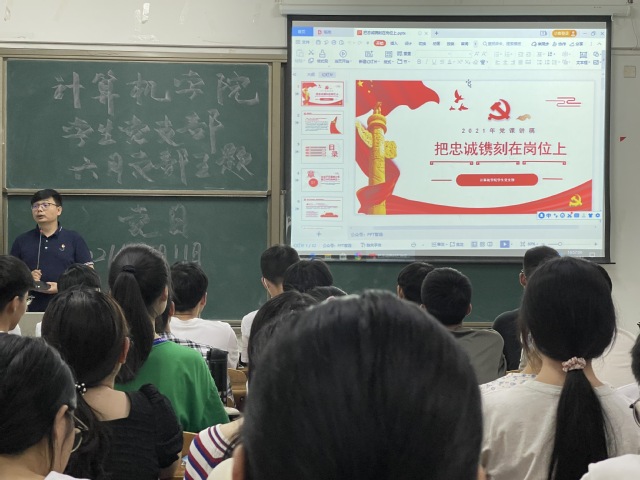 学生第一党支部书记邓家桃以《奋斗百年路启航新征程》为题,围绕“建立中国共产党、没有共产党就没有新中国、没有共产党就没有社会主义中国、没有共产党就没有中国特色社会主义、党的100年光辉历程给我们的深刻启示”五个方面深度解读,强调中国共产党100年的历史是马克思主义基本原理同中国具体实际相结合、不断推进马克思主义中国化的100年;是中国结束近代饱受屈辱的历史和长年战乱的局面、战胜各种困难和风险顽强奋进的100年;是中国人民掌握自己的命运、意气风发地建设新生活的100年;是我们党经受住各种风浪考验、不断发展壮大、不断开创各项事业新局面的100年。
