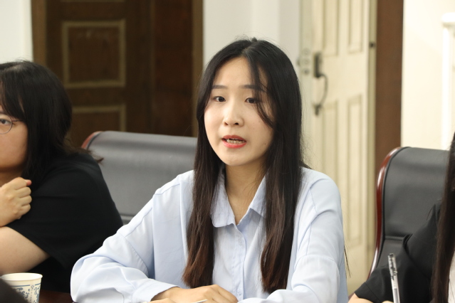 12位来自各个专业的毕业生代表表示十分感谢大学期间老师们辛勤培养和谆谆教导,大学收获很多,成长很多。关于学院教学、管理等各方面,毕业生们各抒己见,提了很多有建设性的建议。