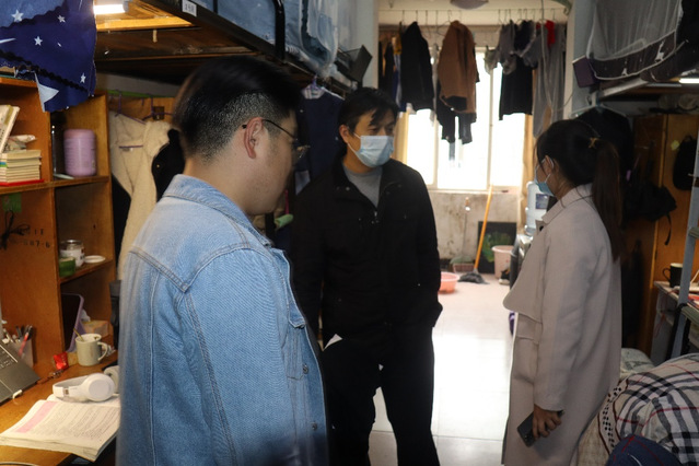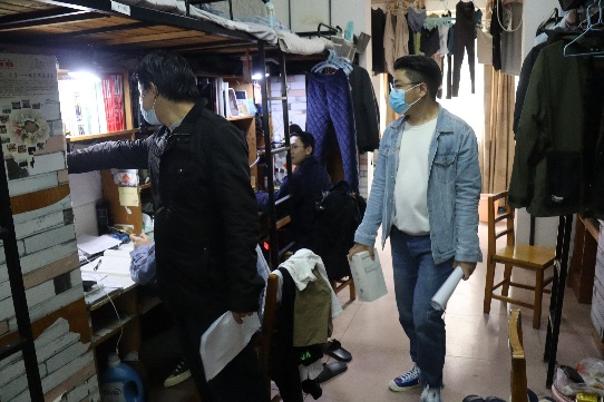 首先,各位老师兵分几路,分别对不同楼层的寝室进行有针对性、目的性的检查,发现寝室整体卫生环境情况良好,但是仍有个别寝室存在较大问题,比如东西摆放杂乱无章、空气不够清新,仍需加强寝风建设管理。