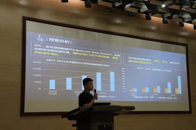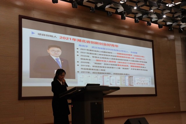 典礼第六项,互联网+获奖团队成果展示。2018级物联网工程专业朱虹霏和2019级计算机科学与技术中外专业施睿作为团队代表进行了项目展示。两位同学向新生们展示了学院学子风采,加深了新生们对于该赛事的了解,鼓舞着同学们积极参与。