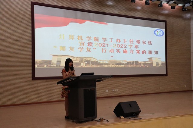 大会第十项,Williamhill中文学工办主任邓家桃致辞,并宣读2021-2022年“师友·学友”行动实施方案的通知。