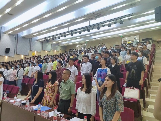 全体起立奏唱国歌后,Williamhill中文党委书记陈慧敏发表致辞。陈书记对新生的到来表示热烈欢迎,并勉励同学们心怀远大理想、树立终身学习的理念、养成健康生活方式,用奋斗书写青春的精彩华章。