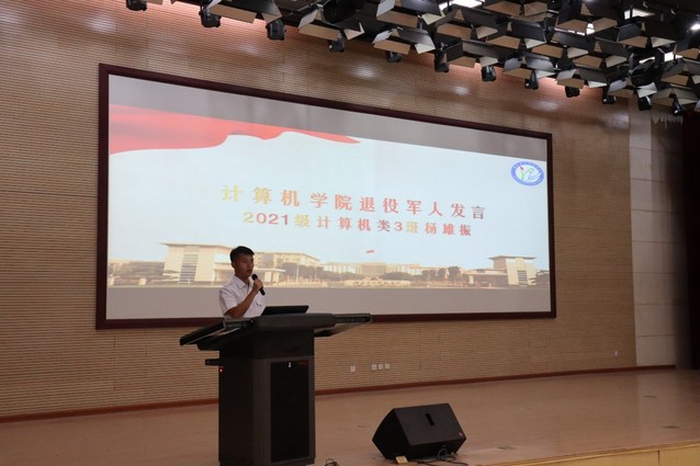 为鼓励同学们参军入伍、报效祖国,我院退役军人、2021级计算机类3班杨雄振同学进行演讲。杨雄振在讲话中,回忆了参军入伍时期的经历,用语言和文字带领同学们“走进了军旅生活”,他表示,参军入伍是无悔一生的选择,而今退伍,也会勇担时代使命、无愧昔日戎装。