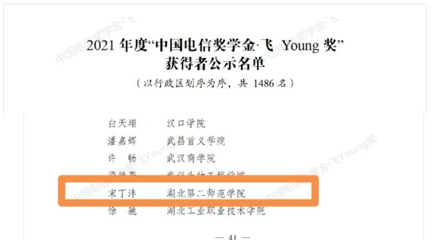 据悉,2021年度“中国电信奖学金”推报活动由共青团中央、全国学联指导,中国电信集团有限公司、中国光华科技基金会联合举办。经校级、地市级分别推荐、省级初评和全国评审,初步确定“中国电信奖学金·天翼奖”获得者98名,“中国电信奖学金·飞Young奖”获得者1486名。