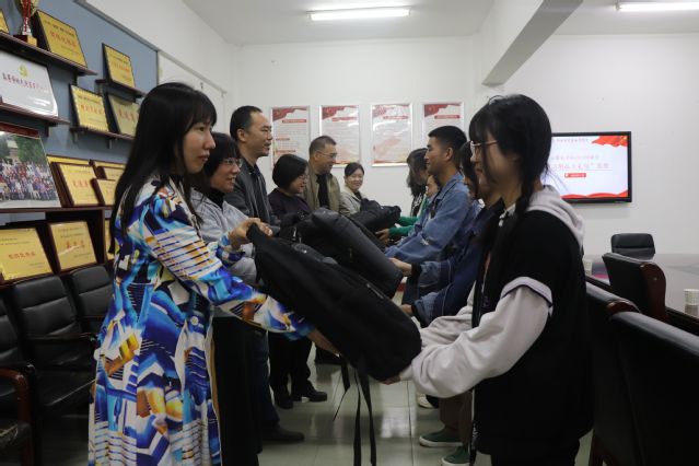 最后,在场老师为新生代表发放学习用品大礼包。