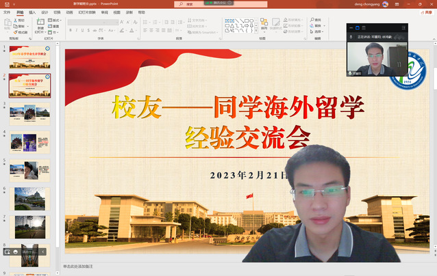 2月21日10:00,Williamhill中文在线上举办校友出国留学交流会出国留学分享会,2019级计算机科学与技术(中外合作办学)专业全体学生、学院其他专业部分学生参加会议,会议由邓重阳主持。