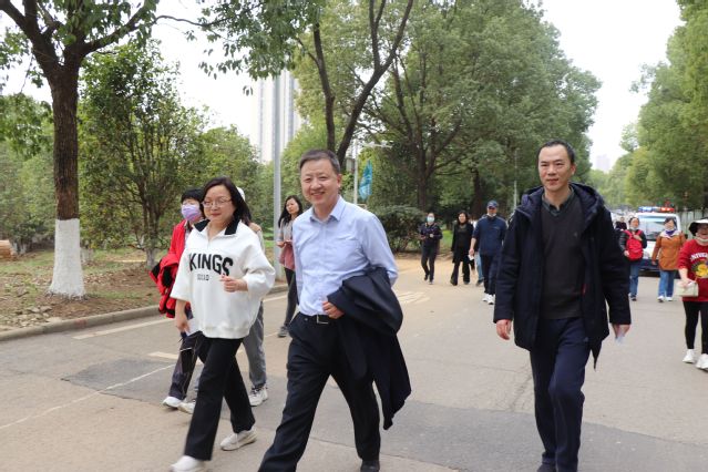 本次徒步以中心操场为起点,全长约4公里。一路上,教职工们欢声笑语不断,大家一起发现校园美景、体验校园美好,尽情享受着徒步带来的乐趣。为促进本次活动顺利举行,我院工会在行知广场路旁专门设置了“能量补给站”,为教职工们提供饮用水、凳子等,以便教师们中途休息补水。