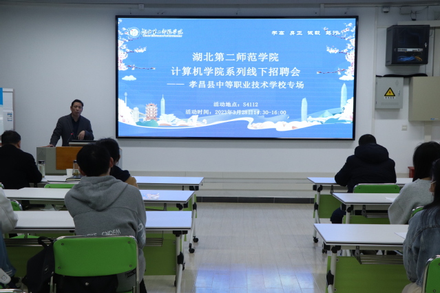 招聘会上,孝昌县中等职业技术学校党组织副书记闵仲明介绍了本次招聘岗位需求、薪资结构、福利待遇以及任职条件等内容。同学们通过学校宣传短片对该校发展历程、师资情况、未来规划等情况有了更深入的了解。随后,孝昌县中等职业技术学校相关领导老师和参会学生进行了深入交流,并对30余名有明确就业意向的学生进行了初步面试。
