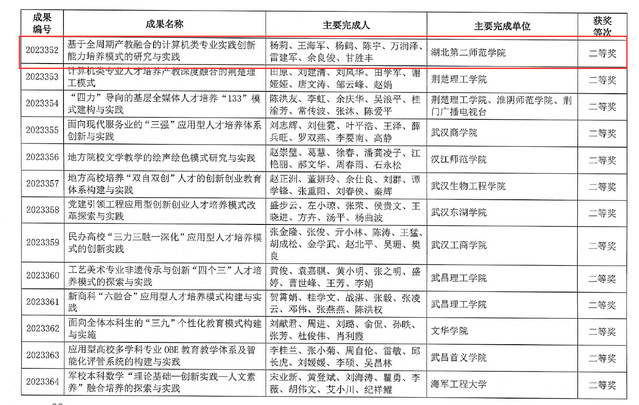 湖北省高等学校教学成果二等奖:基于全周期产教融合的计算机类专业实践创新能力培养模式的研究与实践