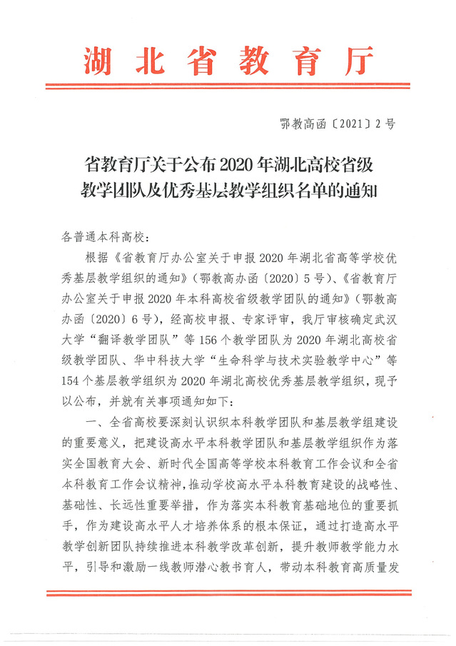 湖北省优秀基层教学组织:计算机科学与技术