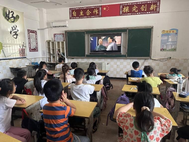 图为孩子们在红色观影课堂上观看电影《建国大业》,感受红色文化。中国青年网通讯员周瑶供图