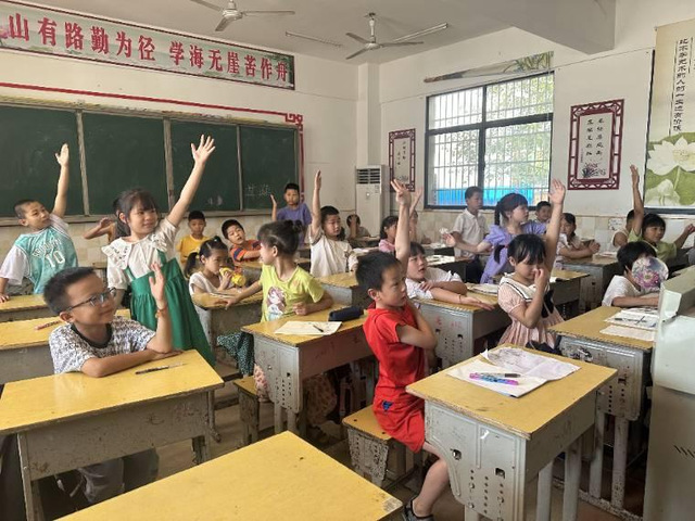 图为数学课堂上,孩子们积极举手回答问题。中国青年网通讯员周瑶供图