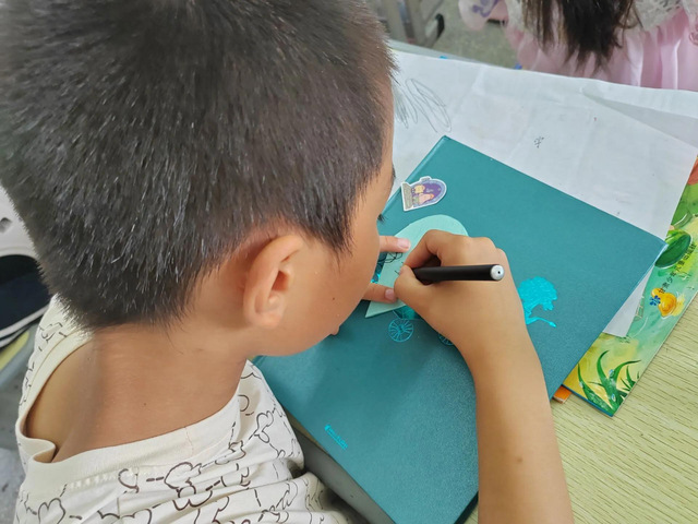 图为小朋友在纸上写下自己的理想。通讯员曹梓贤供图