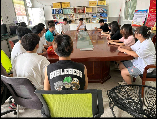 图为志愿者们在一起讨论关于日后教学以及值班问题。