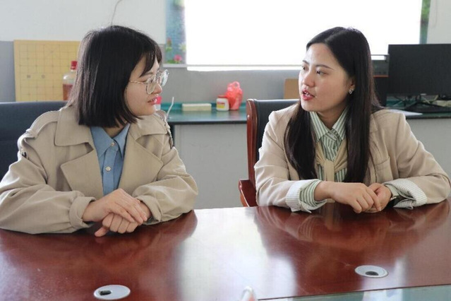 图为支教队员与校长讨论工作问题 中国青年网通讯员 周冬晴 供