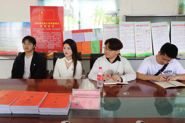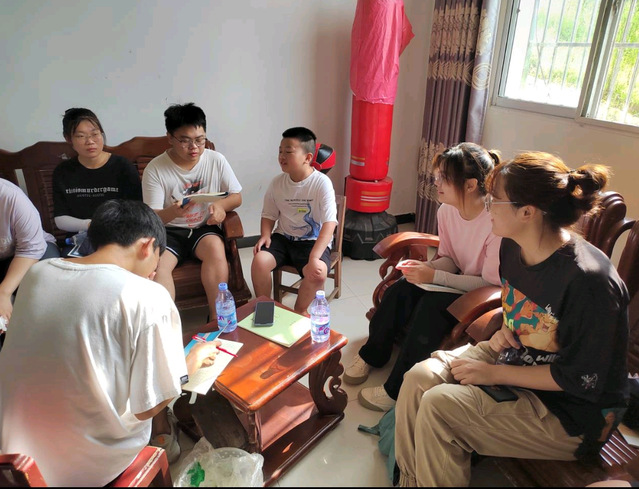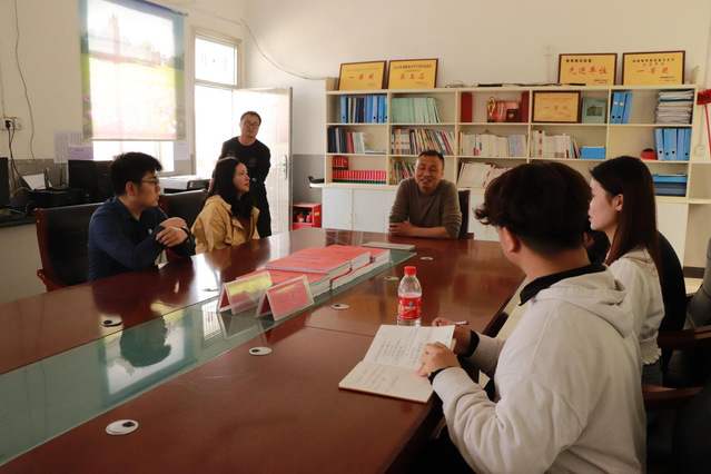 图为毛畈小学校长和志愿者们讨论后续工作事项