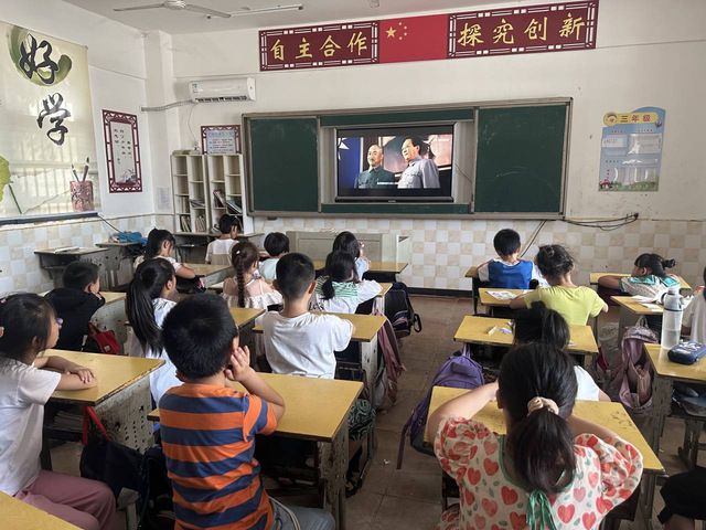 图为支教老师带领同学们进行红色观影中国青年网周瑶摄