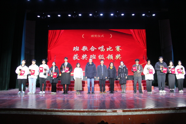 比赛结束后,学校信息化办公室主任李波、学院院长杨莉、党委书记陈宇、校团委副书记张静、副院长杨鹤为班歌合唱比赛获奖班级颁奖。班主任贾明华、尚俊、秦艳娇、胡天慧、王世娟为“十佳歌手”大赛决赛获奖选手颁奖。