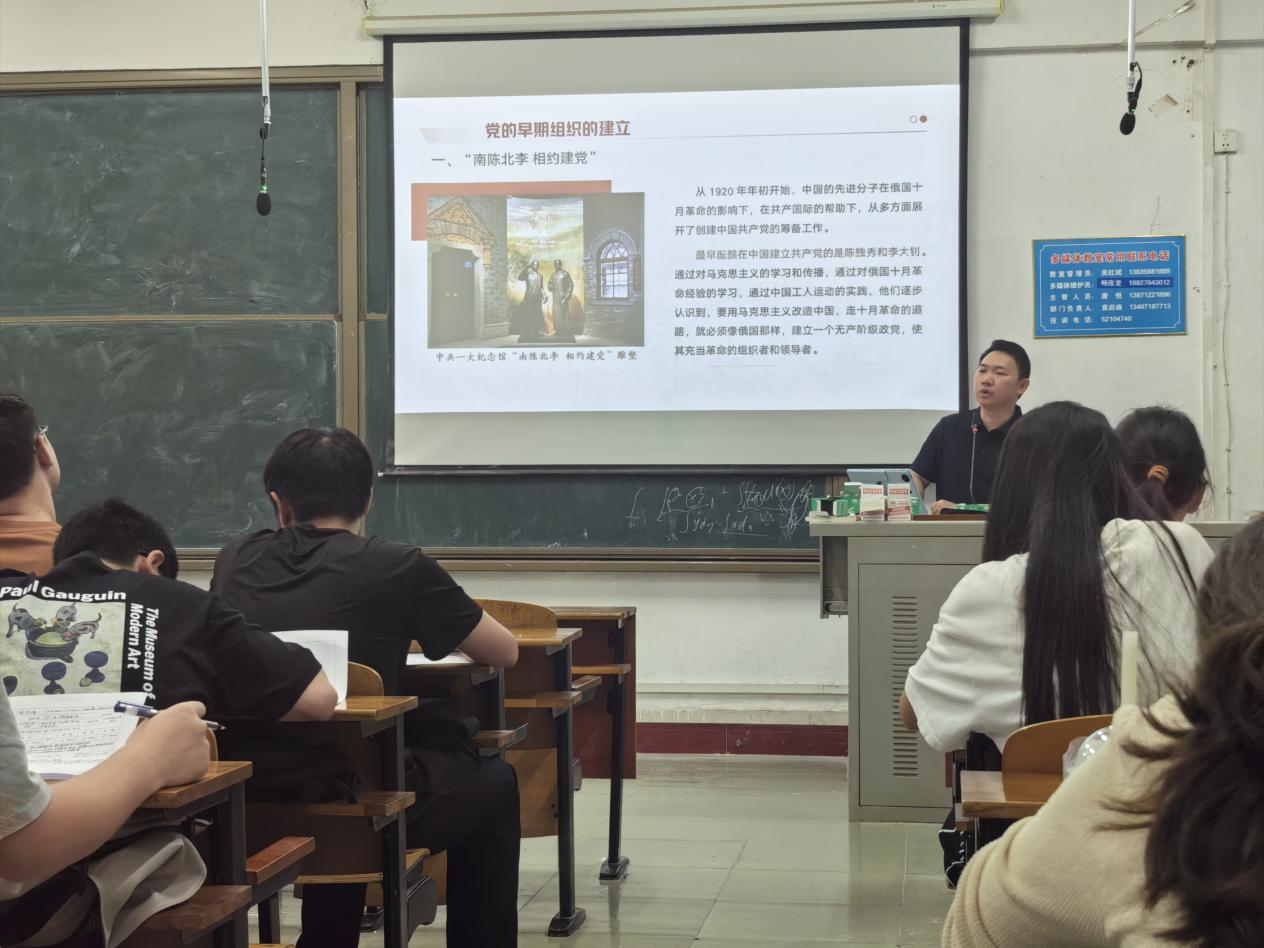 廖航围绕中国共产党诞生的历史背景,重点讲解了中共一大的召开及中国共产党纲领的主要内容,深入阐述了建党初期中国共产党人对马克思主义的坚定信仰与实践探索。他结合早期党组织的发展历程,回顾了中国共产党从小组走向政党的艰难进程,让大家深刻理解党从诞生之初就肩负起为民族谋复兴、为人民谋幸福的初心使命。