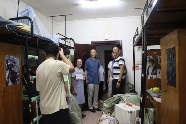 搬迁当天,同学们将打包整齐、贴好醒目标签的行李有序码放在宿舍门口。学院领导老师早早抵达现场,全程指挥协调。学生志愿者们迅速投入工作,充分发挥先锋模范作用,他们不辞辛劳,穿梭于楼层间,热情协助同学们搬运大件行李。汗水浸湿了衣衫,却挡不住互帮互助的真情。在统一指挥下,行李装车有条不紊,卸车、安置工作迅速展开。刘昕深入学生宿舍,详细询问搬迁进度、了解学生需求,对学院周密高效的组织安排和学生志愿者们的奉献精神给予了充分肯定,并表达了对搬迁学生的关切与支持。搬迁完成后,学院老师及相关部门负责人也第一时间前往学生宿舍看望慰问学生,关心大家安置情况,听取反馈,确保同学们尽快适应新环境。